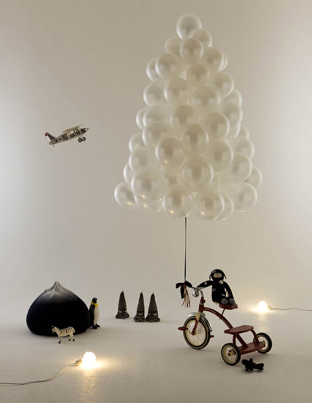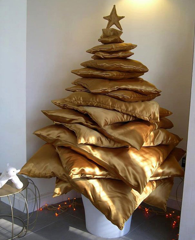 You can also reuse some everyday items to create an artistic Setup shaped like a Christmas tree. Sometimes the most interesting solutions result from unexpected combinations, like a stack of books, a few cushions or even balloons.
