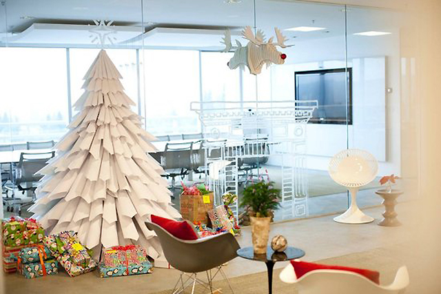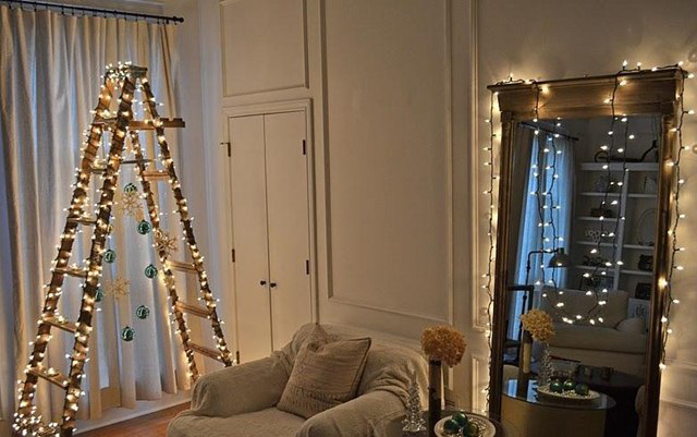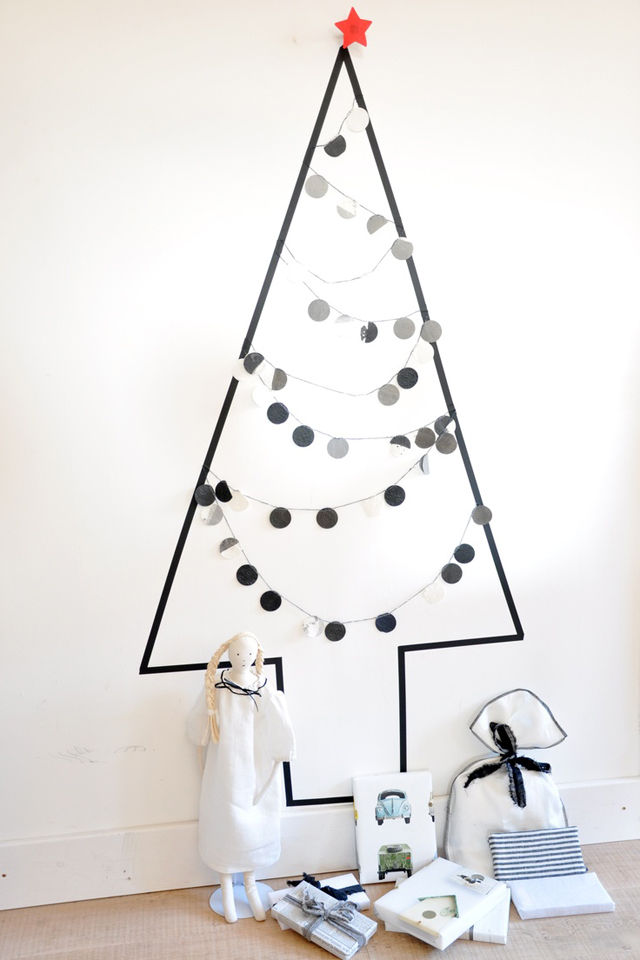 If your problem is lack of space, only a few suspended ornaments or even a Christmas tree on the wall can be great alternatives. You can use any type of materials or objects, you just have to be creative. Try using unexpected materials or objects, eccentric ornaments, and unusual tree shapes to add a touch of humour and joy to this holiday season.