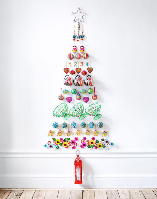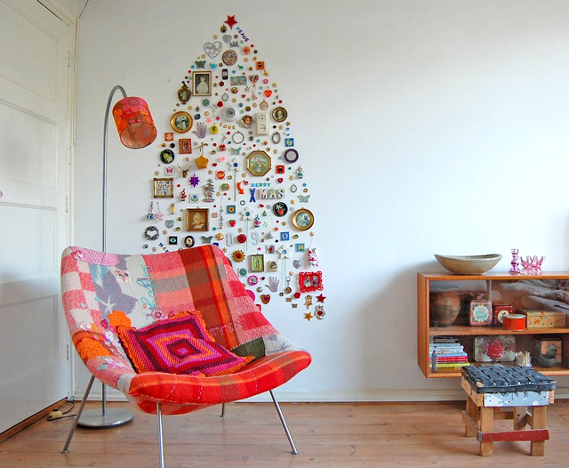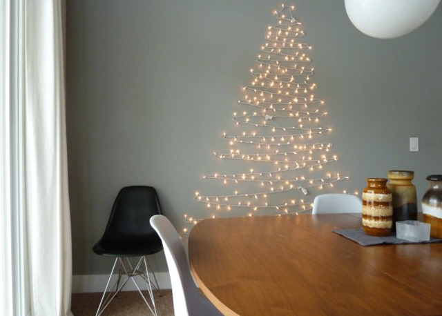 Ornaments, picture frames, lights, yarn, wood branches, postcards, photos or printed images, you can make a Christmas tree as big as your wall. These alternative Christmas trees will certainly be in the spotlight this holiday season, and some of them you can even let them stay throughout the year, you just have to alter its shape according to the season.