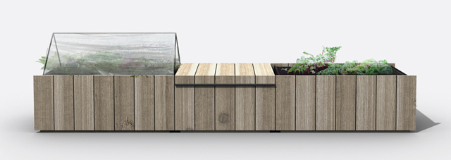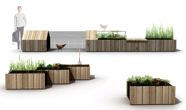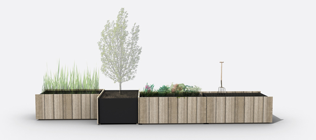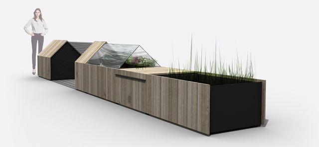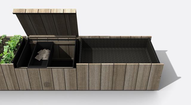 In addition to raised beds for vegetables and small coops, different modules can be combined in a configuration of your choice, such as a composting bin, a tool shed or a container for collecting rain water. Consumers can select the components they want to build an organic production unit in a configuration of their own choice.