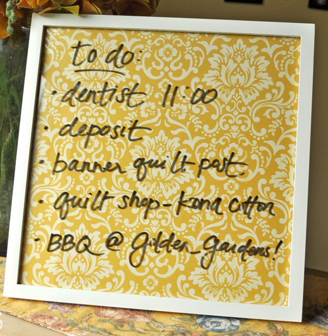 You can also make your notebook into a decorative item, and far more interesting. Just place a piece of paper, with a pattern that you like, into a frame with glass front, and put it in a handy place. By using a marker, you can leave messages and point out your daily tasks in a unique and aesthetically appealing way!