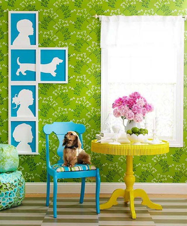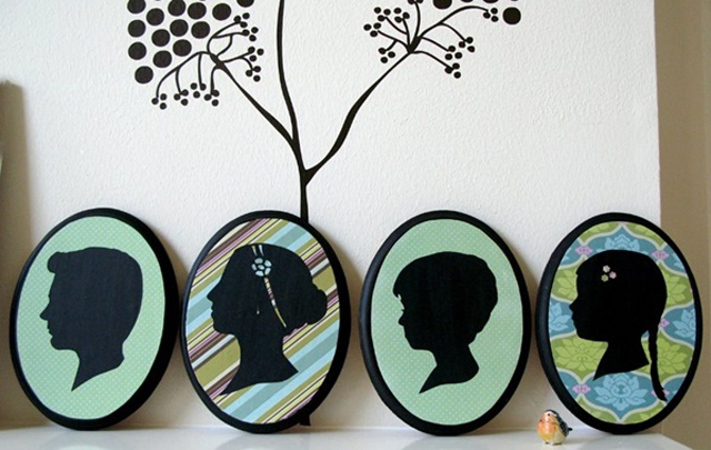 Take a profile picture, cut out its outline and paint it black. Once it’s dry, you can paste it to a paper base with a colorful pattern. Put it in a frame and admire the final result!