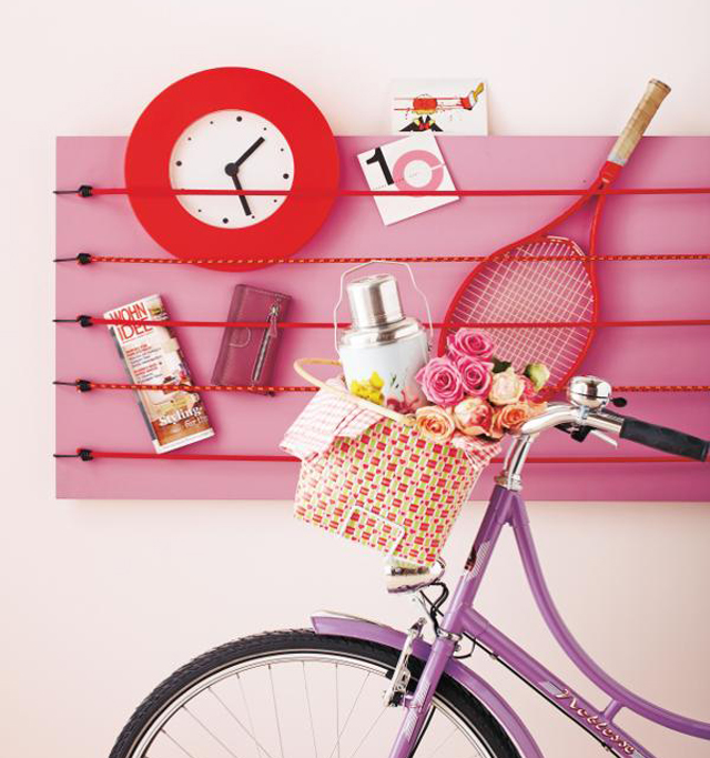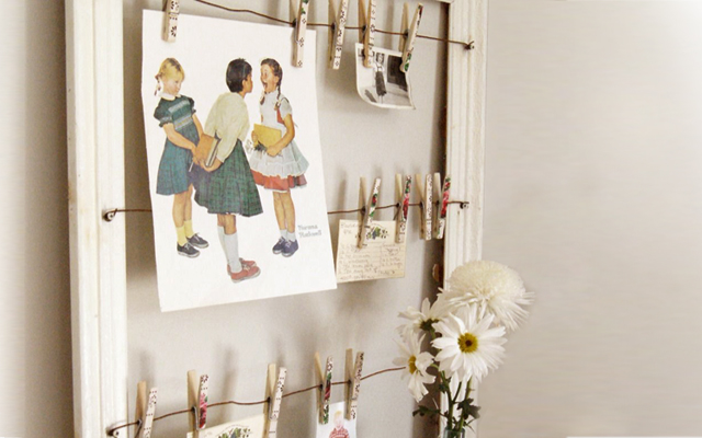 Still within the utilities framework, you can make some useful wall art frames to display postcards, pictures, messages or even bigger objects. Just nail some rubber bands or strings to the structure a canvas, stretch them and use them as support for various items. You can also cross the strings between them to creating some interesting effects!