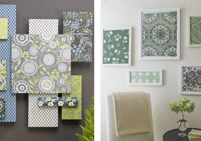 You can do this kind of wall art two ways: just place a piece of fabric inside a frame or use a stapler to attach the fabric to the structure of a canvas or rack