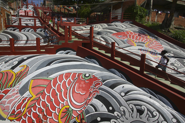 "The Favela Painting Foundation supports the creation of striking artworks in unexpected places. It collaborates with local people to use art as a tool to inspire, create beauty, combat prejudice and attract attention." It is based in Amsterdam, works independent, and operates in Rio de Janeiro with local representatives.