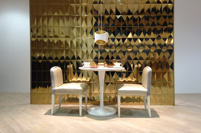 The Tea Time space will provide you new sensations in a relaxing moment, exalting the harmony of Parfum Canelle, the boldness of Wonder Diamond Oro and the comfort of Fusion Tortora.
