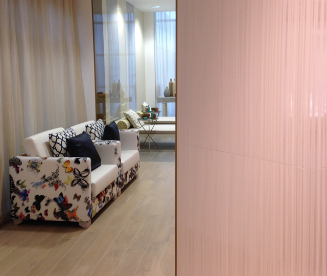 We enter this new concept through an exquisite, contemporary and comfortable hall that welcomes us with by combining both series Parfum Glamour Jasmin Blanc and Fusion Tortora.