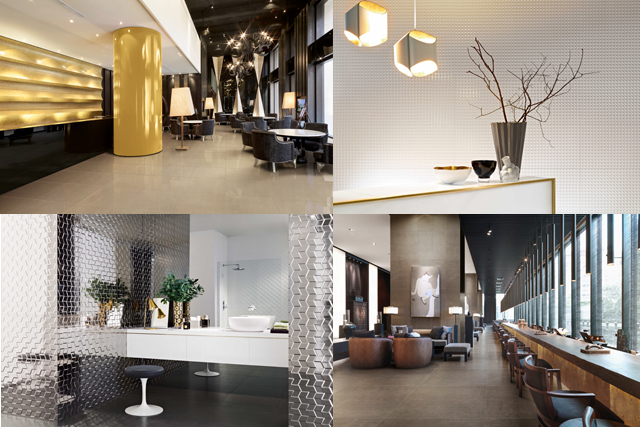 Margres and Love Tiles feature sophisticated and bold collections, with trendy white relief wall coverings, metallic highlights and some notes in black.