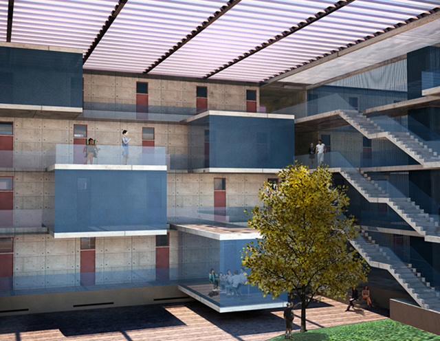 Like cactus, that have two types of roots, the building allows the collection and storage of rainwater and has a water circulation system that cools the courtyards through evaporation and the increase of the environment’s humidity.