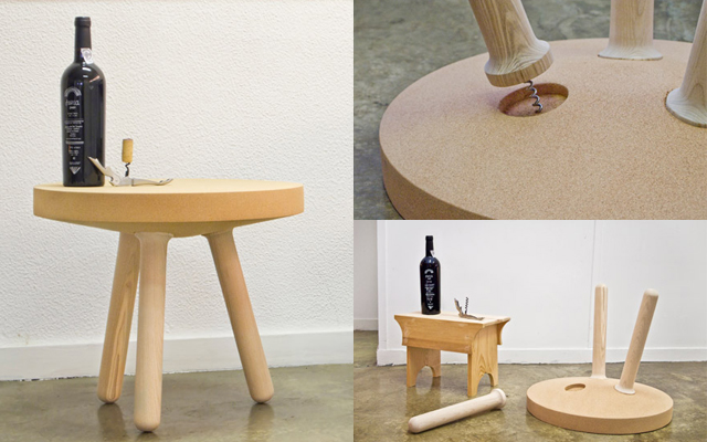 Gonçalo Campos, a Portuguese designer living in London, designed the prototype Rolhap Side-table, a small table cork with a peculiar form of assembly.