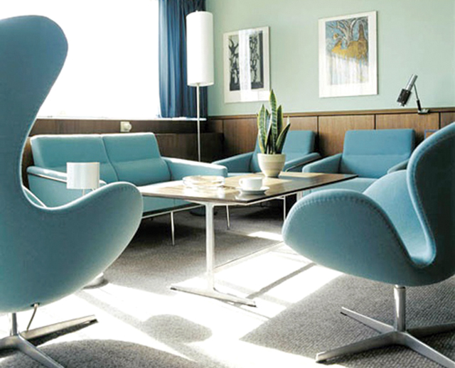By the early 50s of last century, emerged one of the most significant personalities of Scandinavian architecture and design, the Danish architect Arne Jacobsen. Among other works stand out the Royal Hotel for SAS airline and the hotel furniture.
