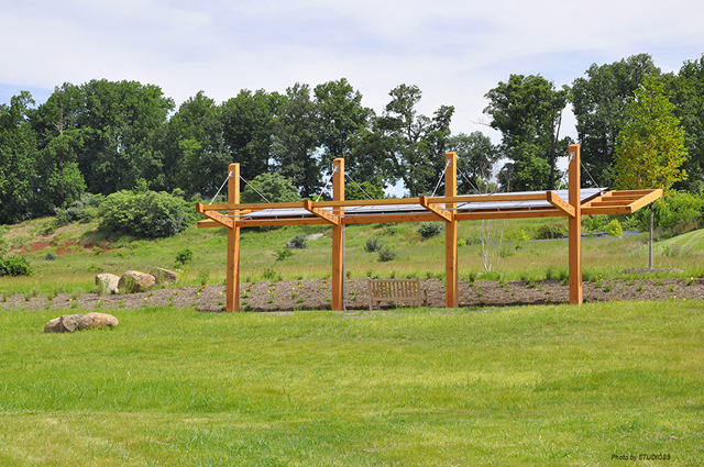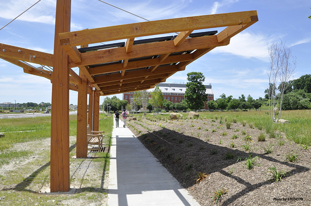 The design is the first piece of the University’s new master plan and will provide solar covered trellises that will help to minimize one of the education building’s overall energy consumption. It spans two plus acres of GW’s Science and Technology Campus.