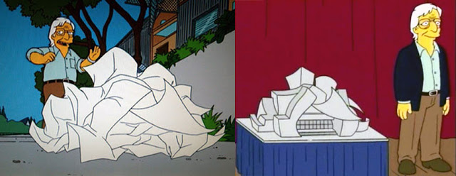 Clip from the series "The Simpsons" in a satire on the concept behind Gehry’s works.
