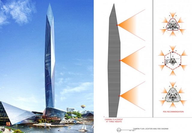 Cameras will be placed in six different sides of the building, at three different heights, capturing real-time images of the surroundings, which will be projected individually on LED screens.